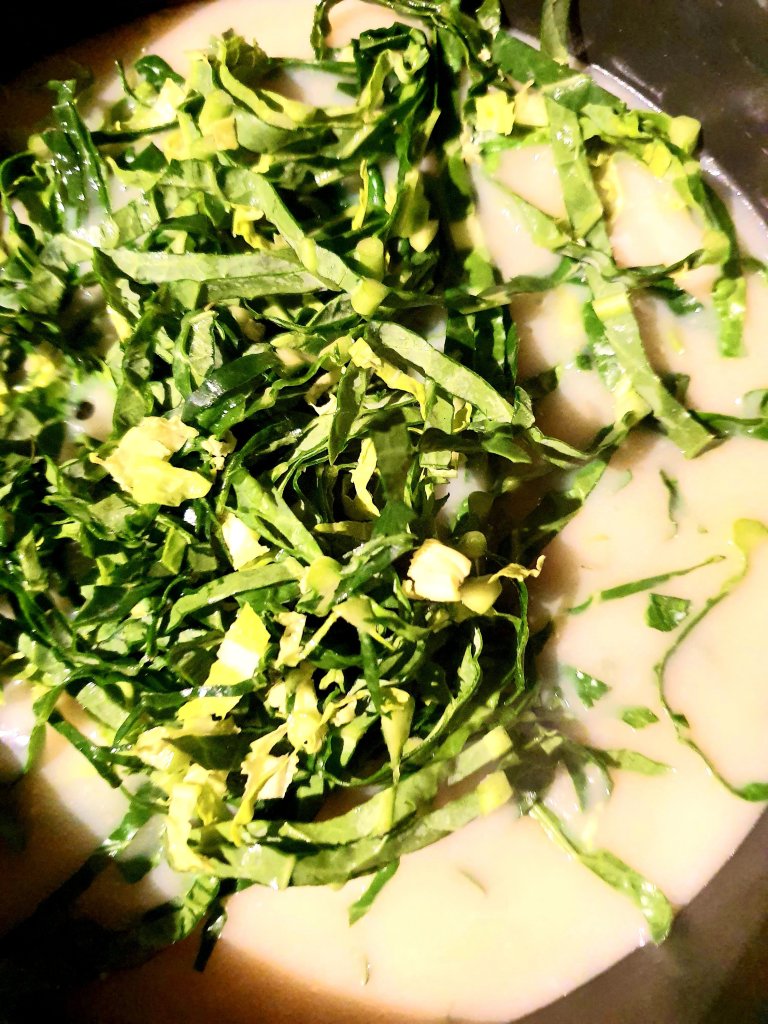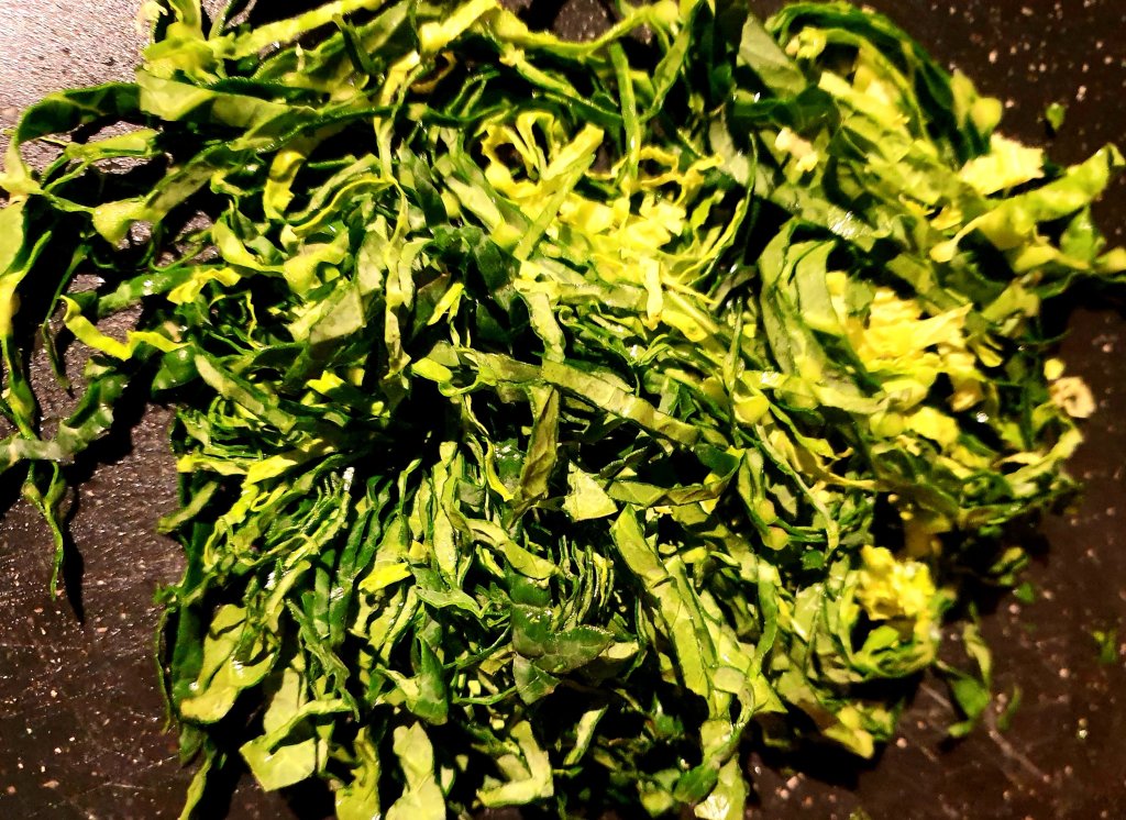 Wash and cut the leaves julienne Style