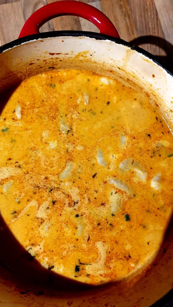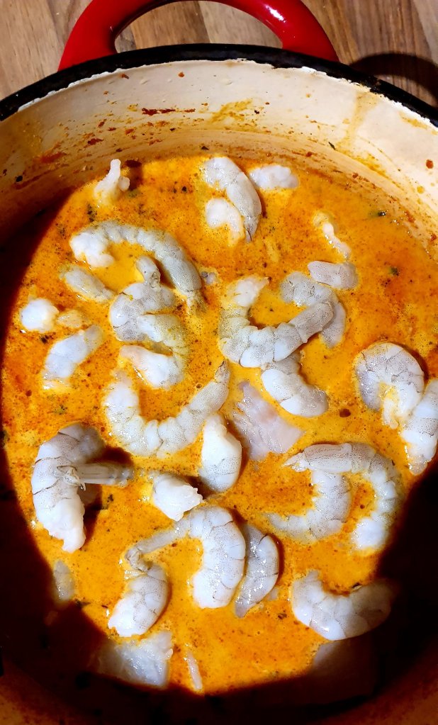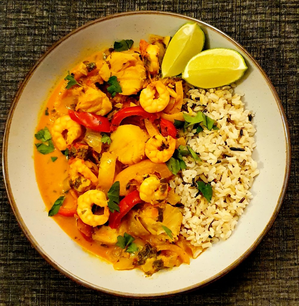 This dish is fresh, exotic, light and yet creamy. So easy to make. It’s great on its own, served with rice or with a nice crusty bread. 🥘🥰💙🍀