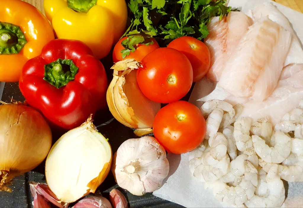 Put the lid on and let it cook for 15 minutes on a medium heat until the fish and prawns are cooked.