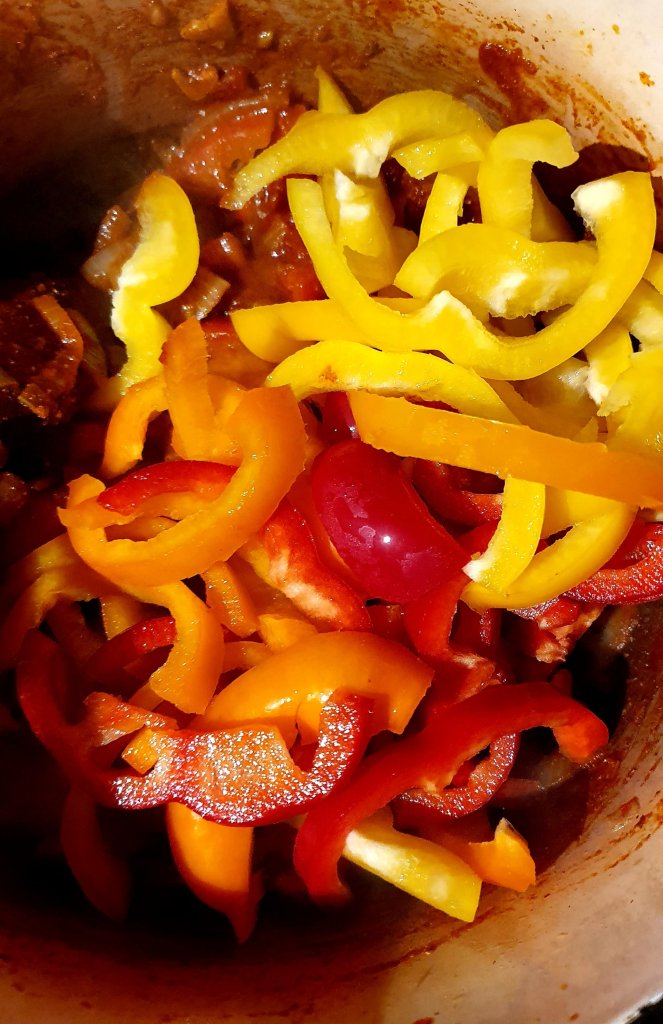 Add the peppers and let it cook for 5 minutes
