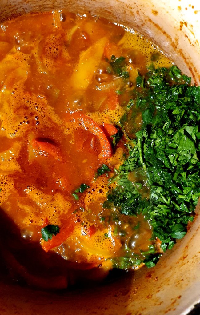 Add parsley and 400ml of water and cook it just until the peppers are a bit soft.