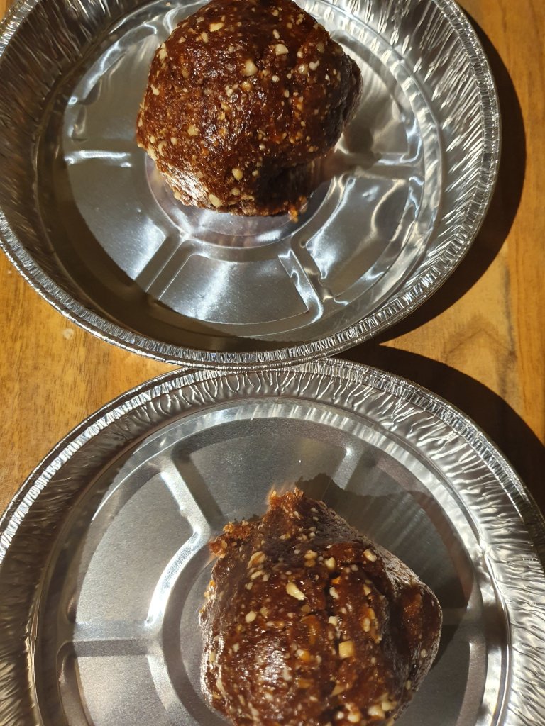 Add all the ingredients to a food processor and blend it until you have a dough consistency. If it’s still to dry add 1 Tbsp of water at the time.