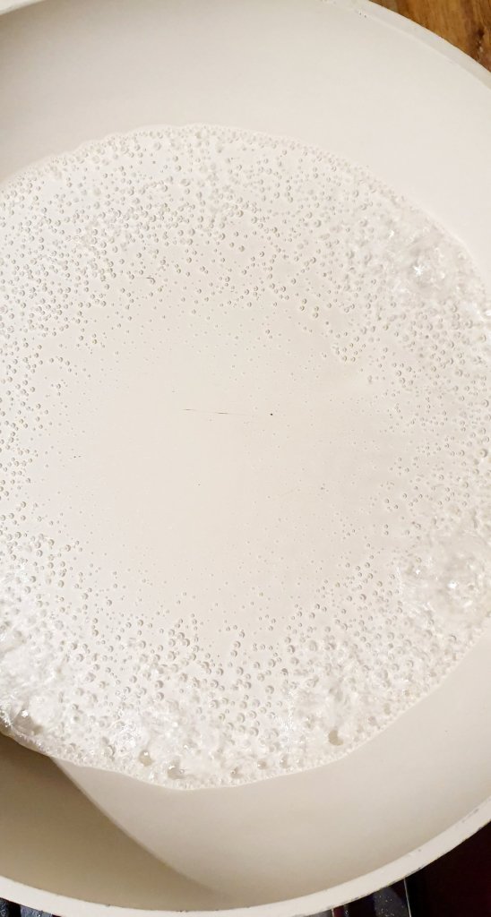 Add half a cup of hot water into a frying pan