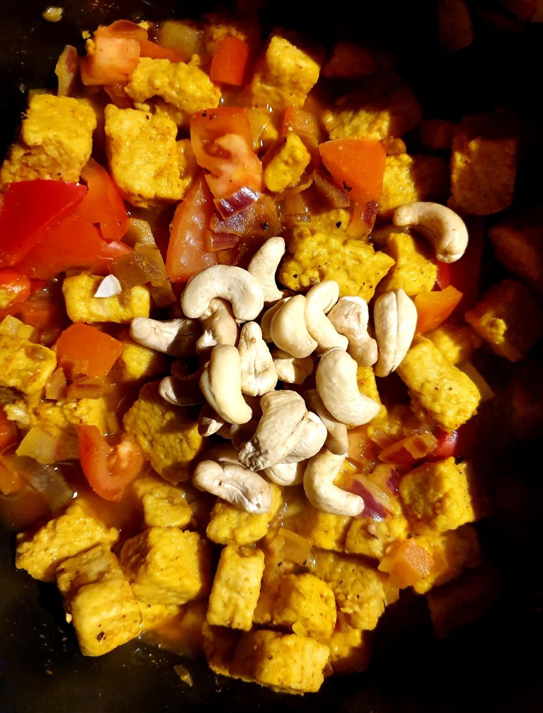 Now it’s time to add the coconut cream to the curry and let it simmer for 5 minutes and it’s ready to serve.