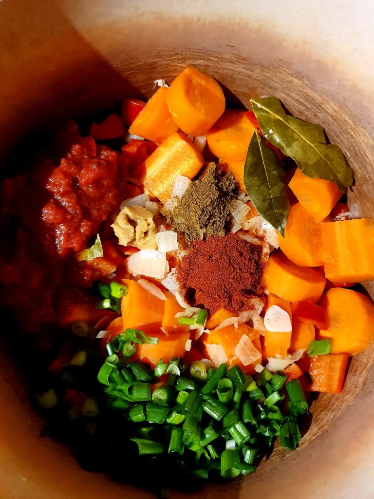 Cover it with water and let it cook for 40 minutes or until the carrots are cooked.