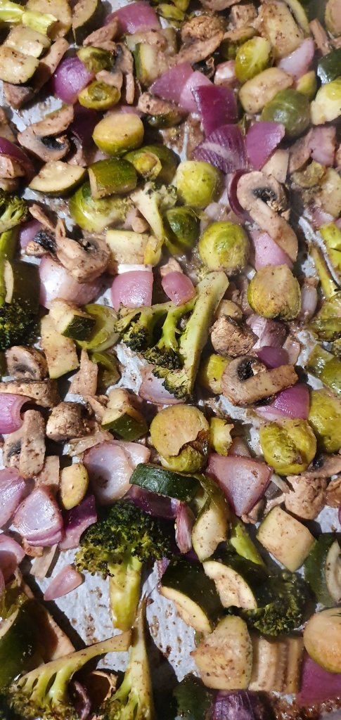 Add the dressing to the vegetables and mix it well then put in the over to roast for 15 minutes (Remeber to remove the tomatoes when adding the vegetables in the oven. Add the tomatoes to roast the last 5 minutes).