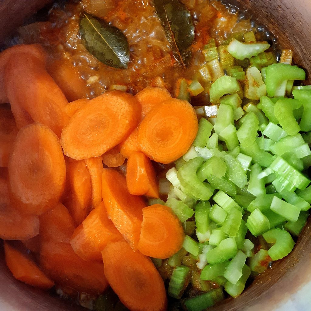 1 – In a large saucepan add I cup of water and onions, garlic, bay leaf, cumin, smoked paprika. Let it cook until the onion is tender.