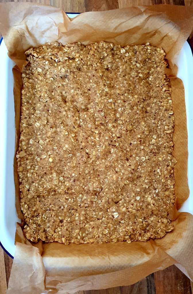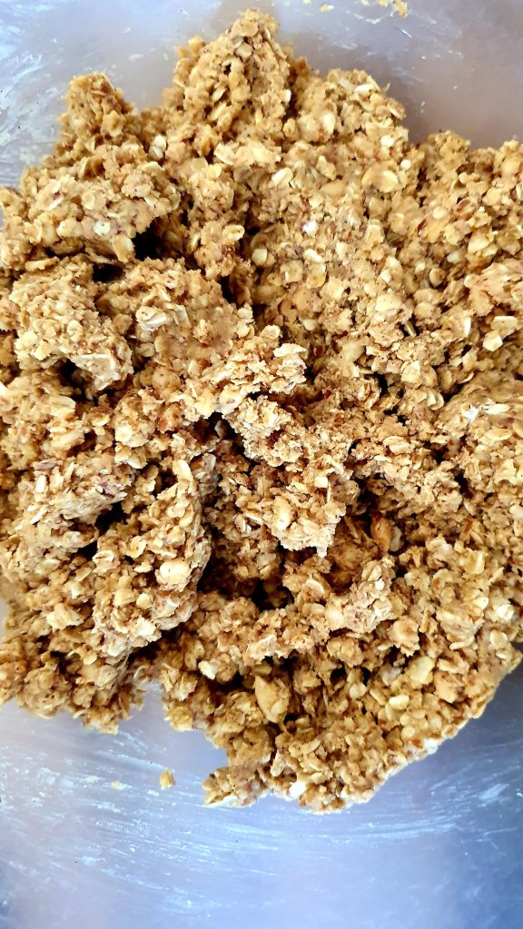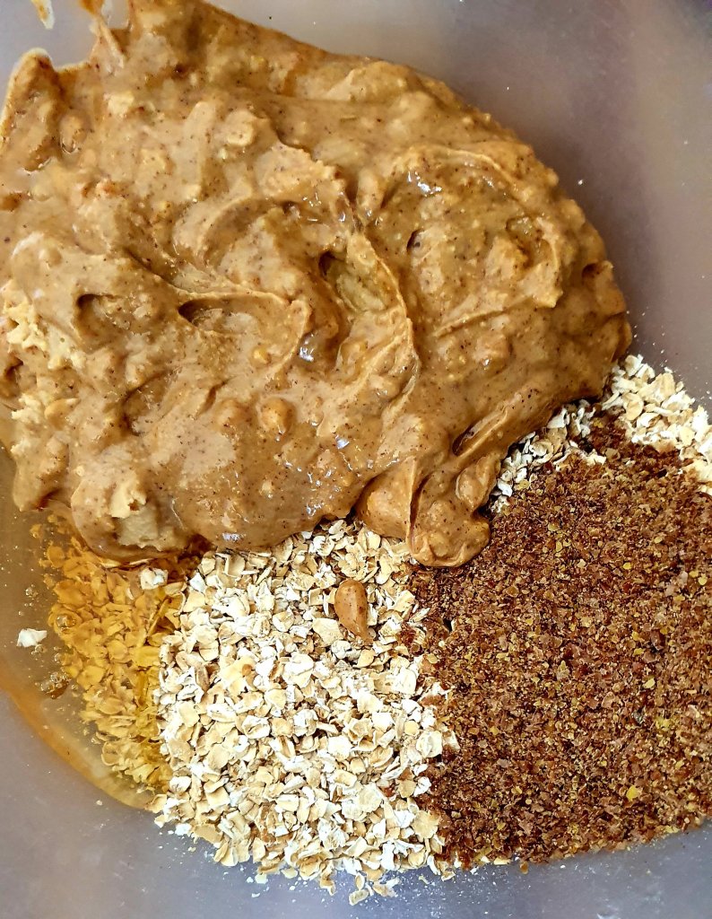 Mix the oats, peanut butter, agave and flaxseeds until it forms a dough.