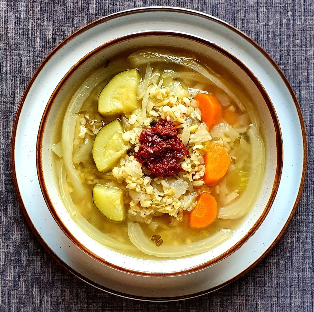 #recipedeveloper #mindfulnutrition #mindfuleating #vegannutritionist #SumSanos #vegan #soup #healthy #healthyfood #miso #creativity #summer #plantbasedfood #oilfree #superfood #glutenfree #saltfree #vegetables #refinedsugarfree #hownottodie #hownottodiecookbook #freekeh #fatfree #abundance #love #loveiseverything #lovewithoutdepending #gratitude